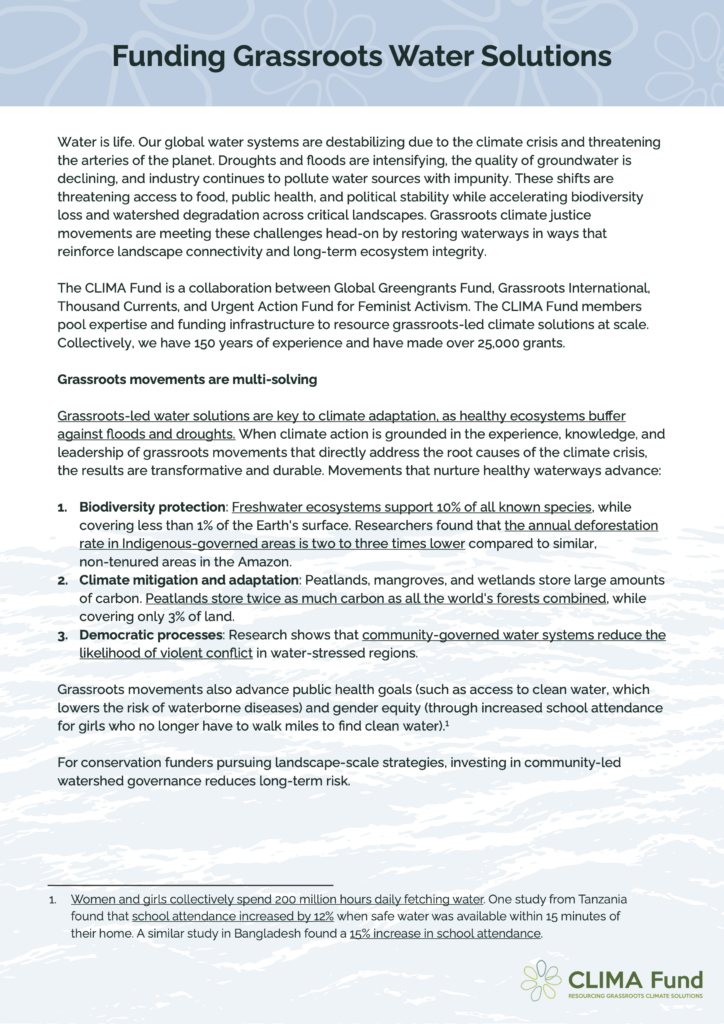 Read our thematic brief on grassroots water solutions to learn how grassroots movements are creating transformative change.